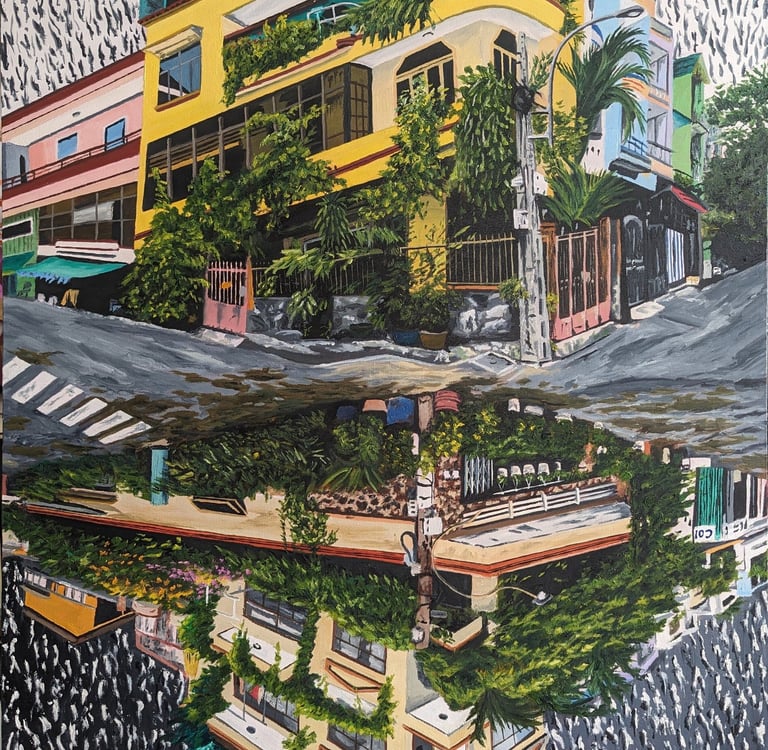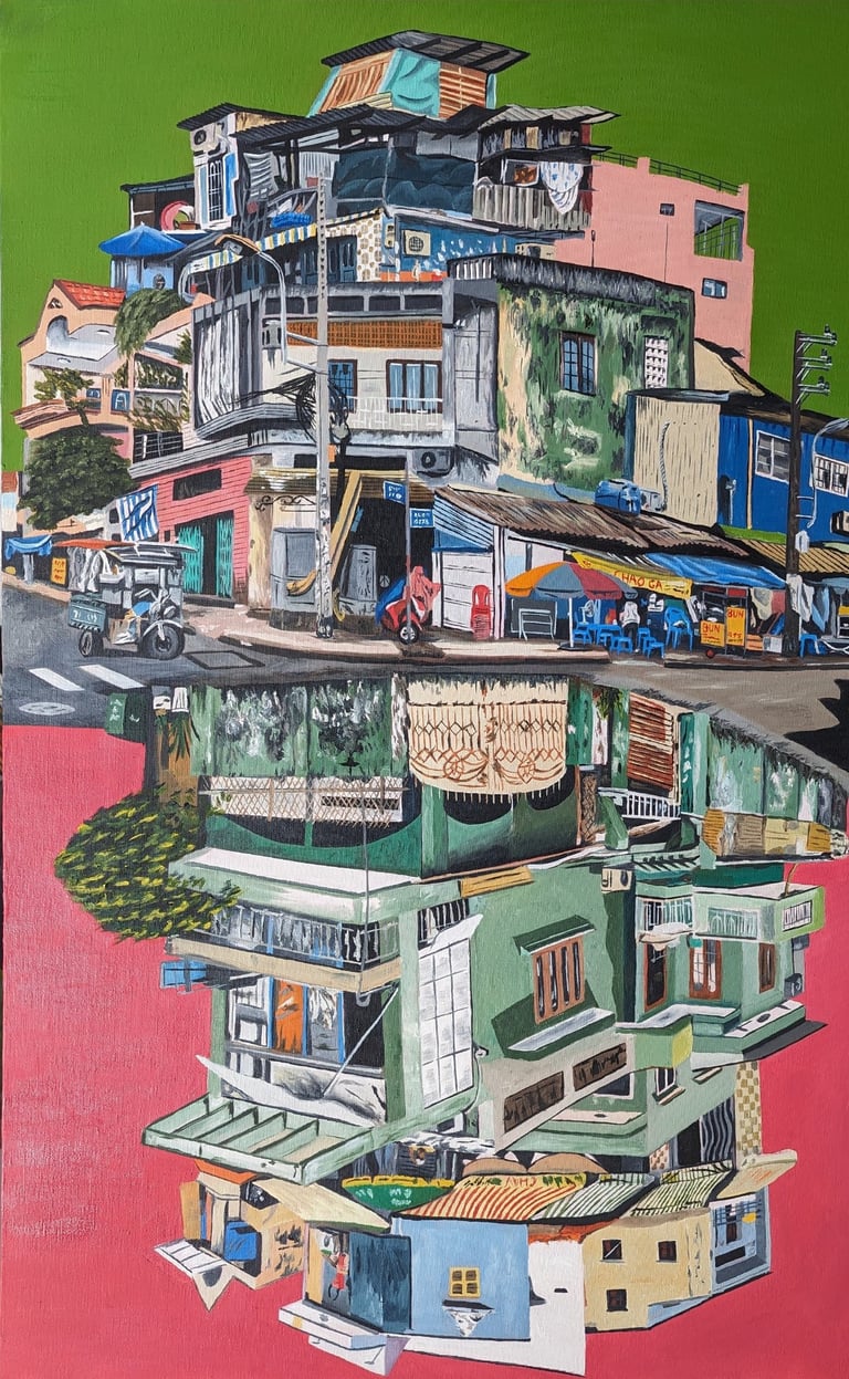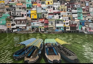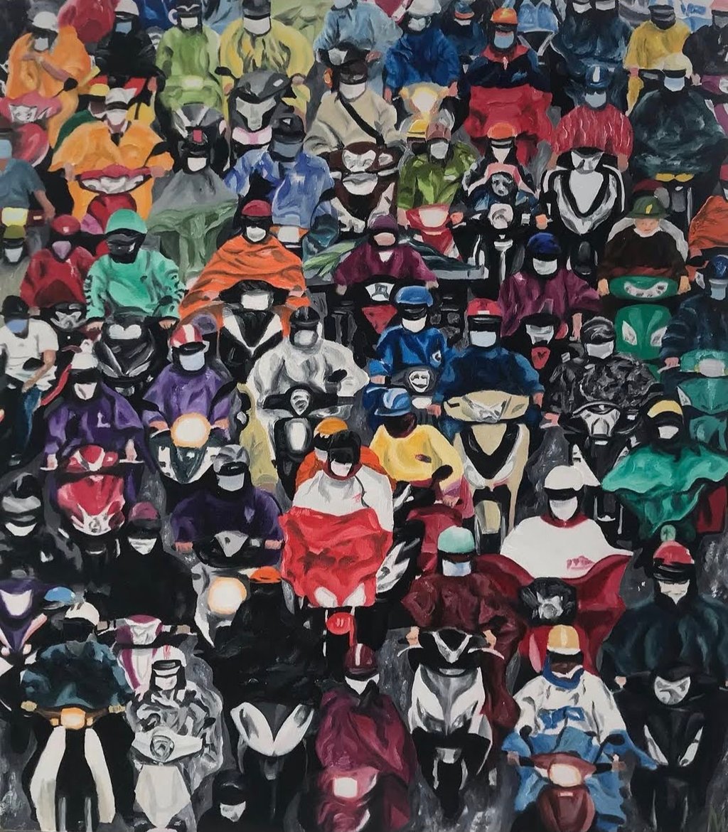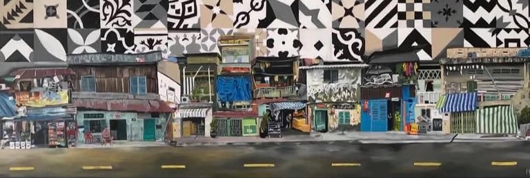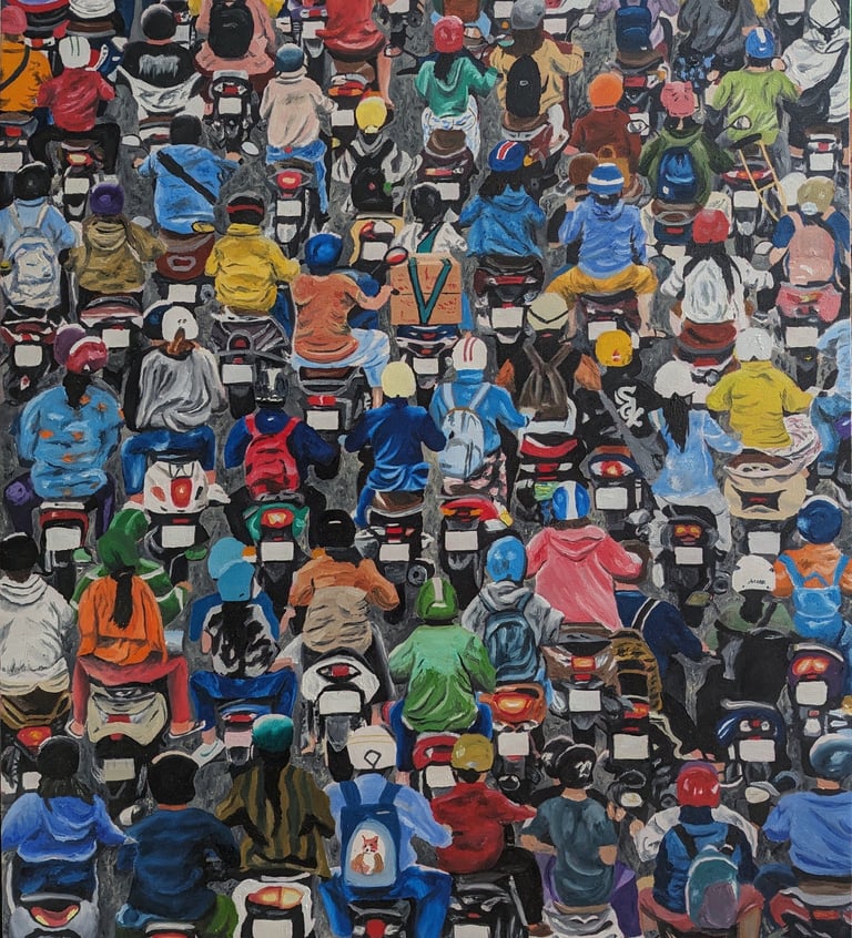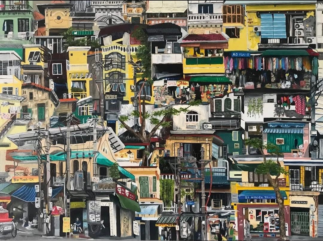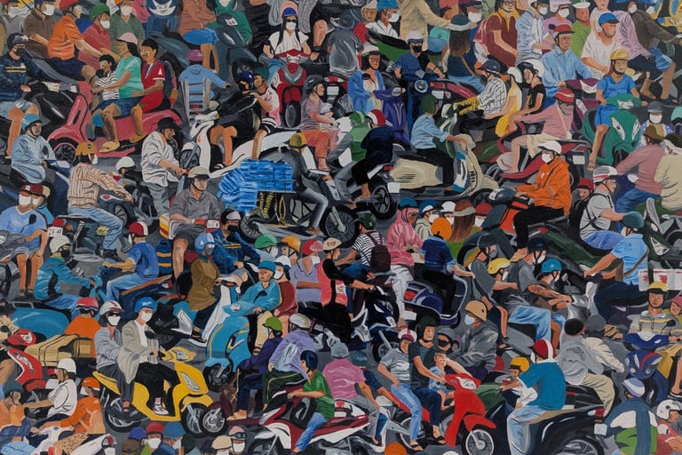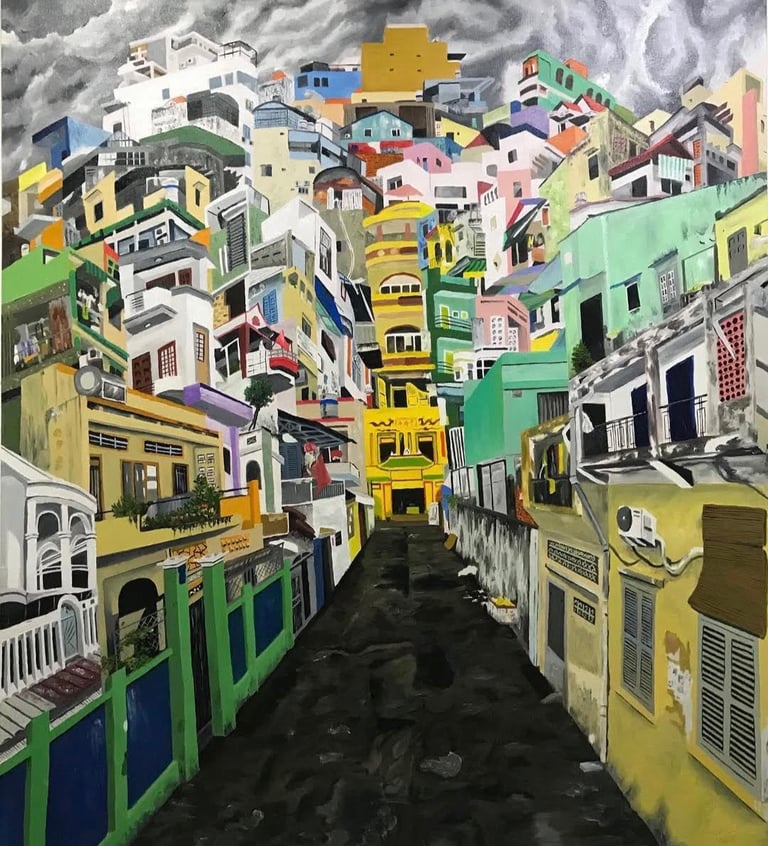 Michael's artwork captures the essence of everyday life in Vietnam beautifully; with his choice of rugged, sometimes temporary locations.