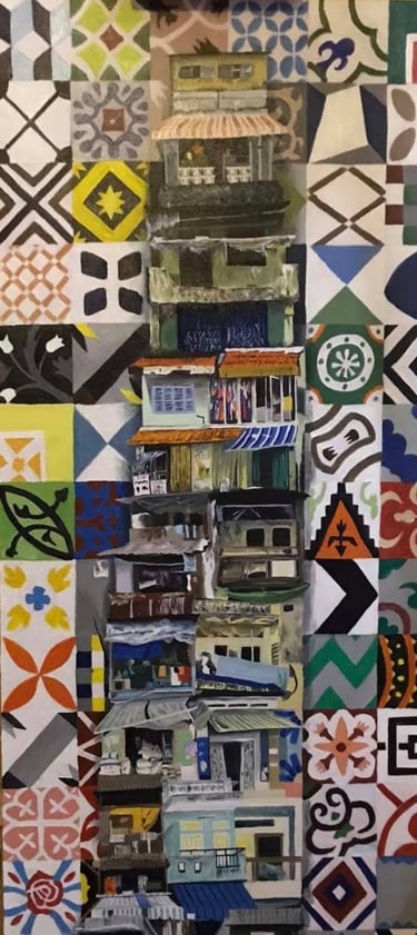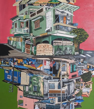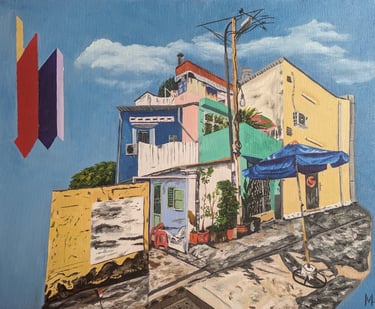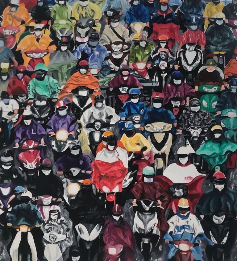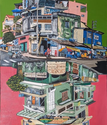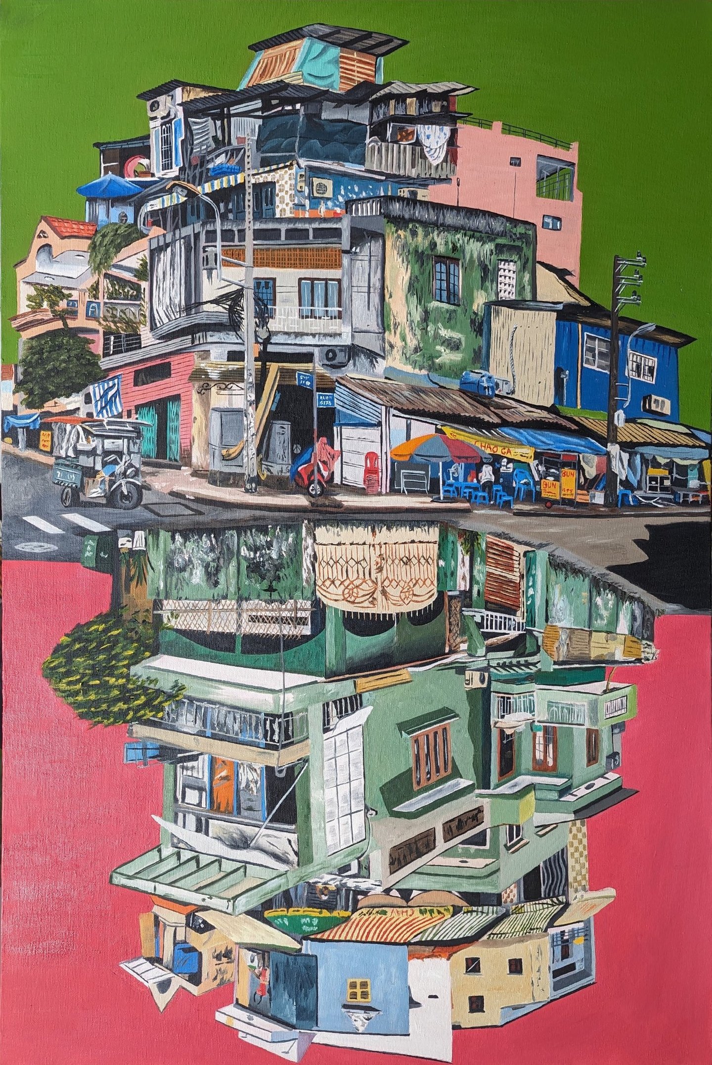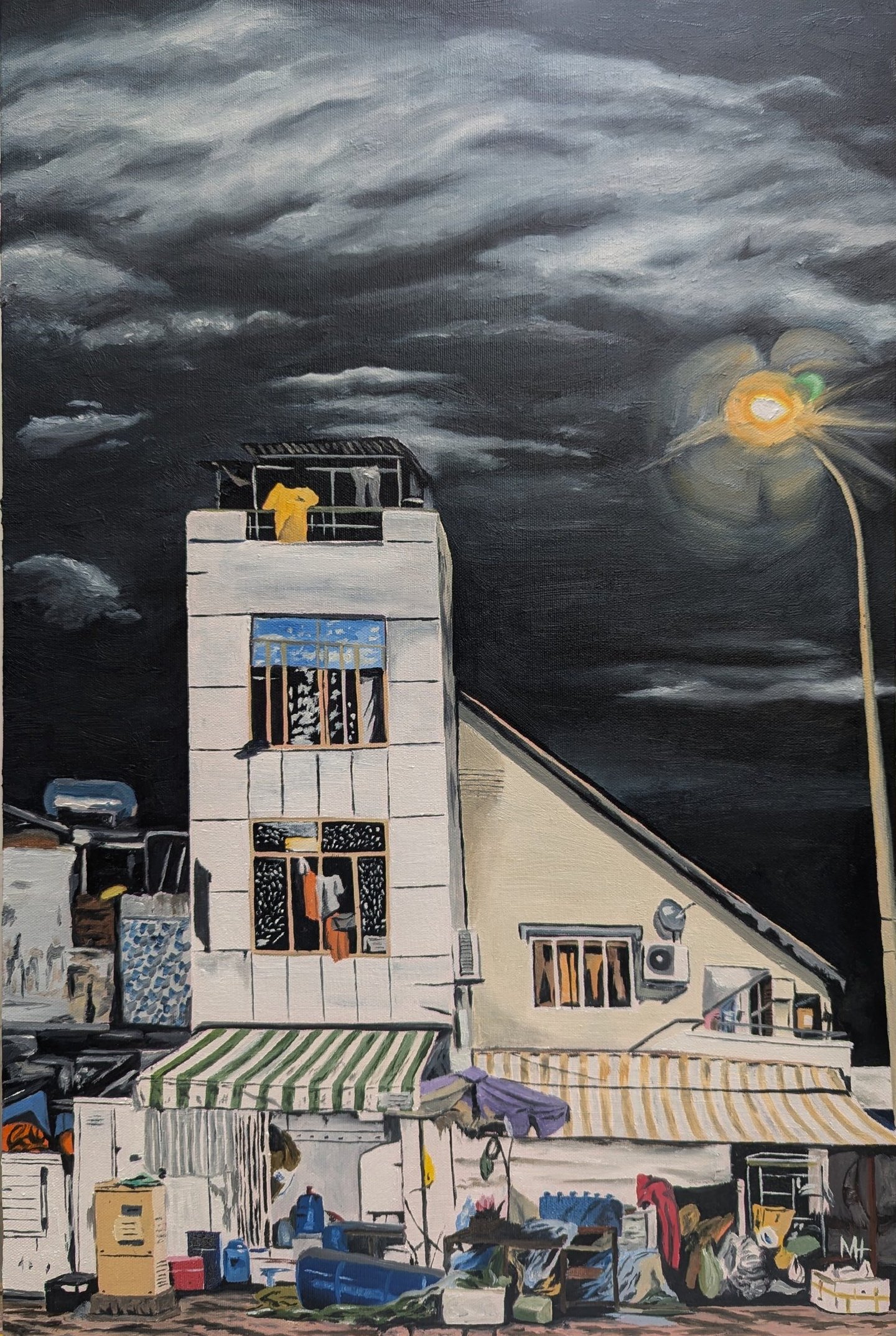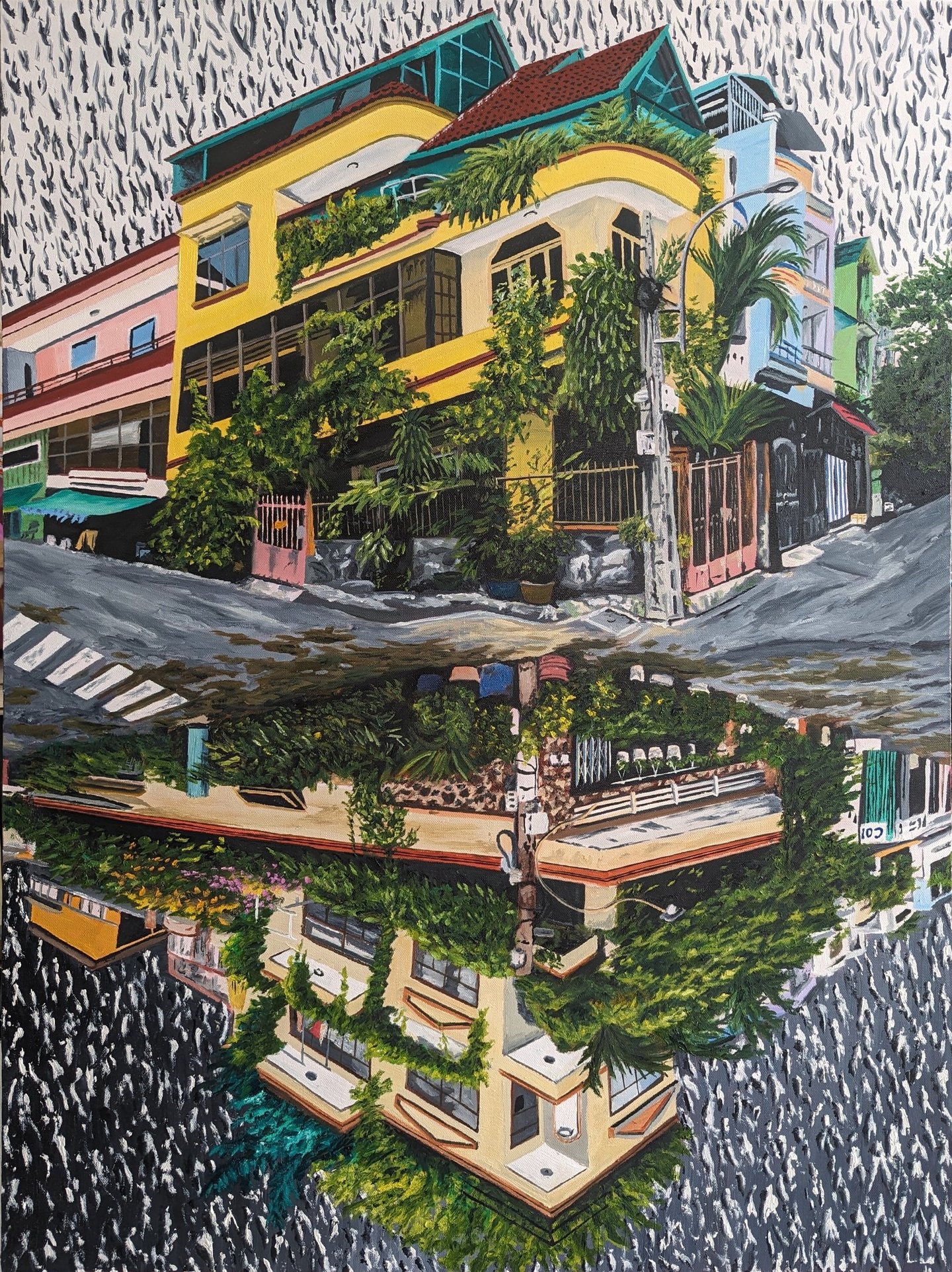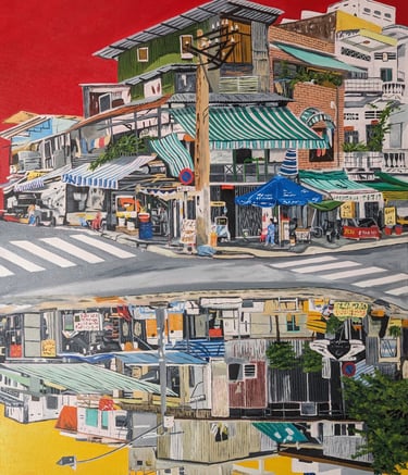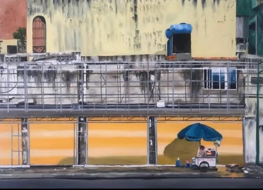 Michael's artwork captures the essence of everyday life in Vietnam beautifully; with his choice of rugged, sometimes temporary locations.