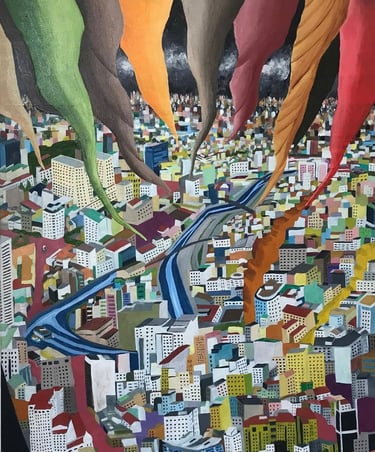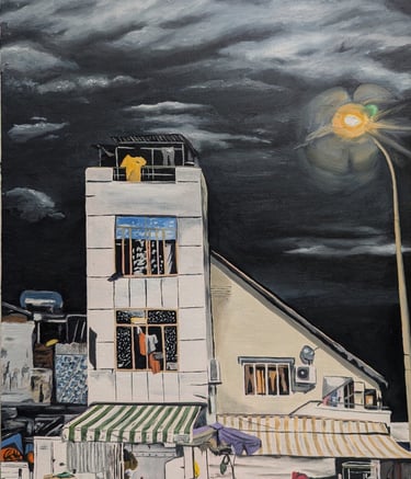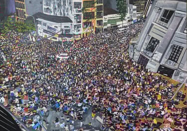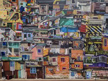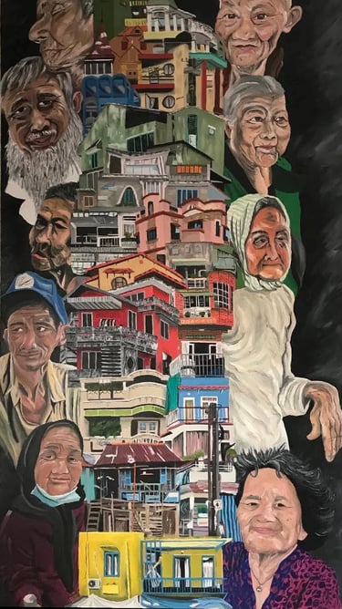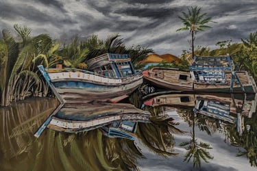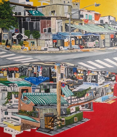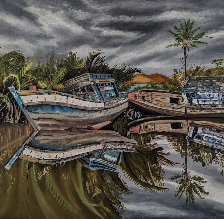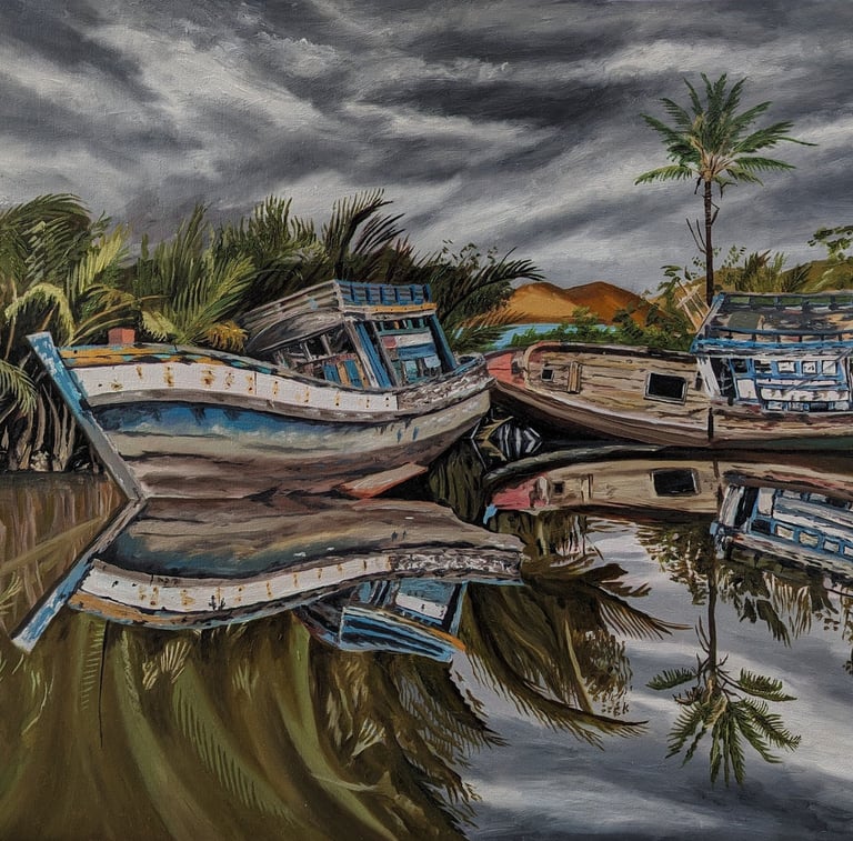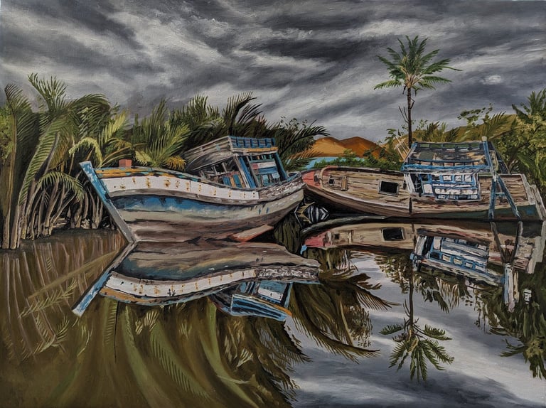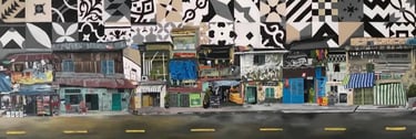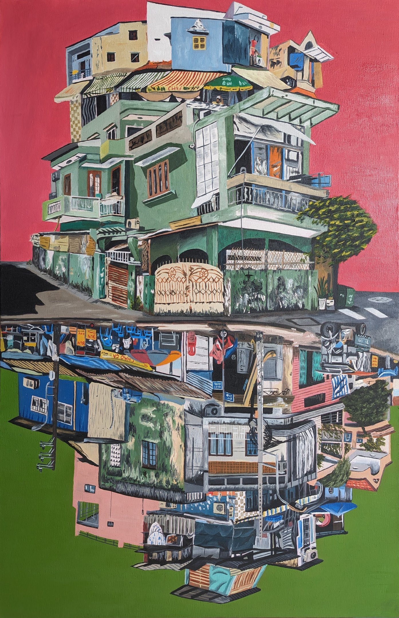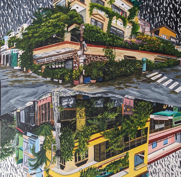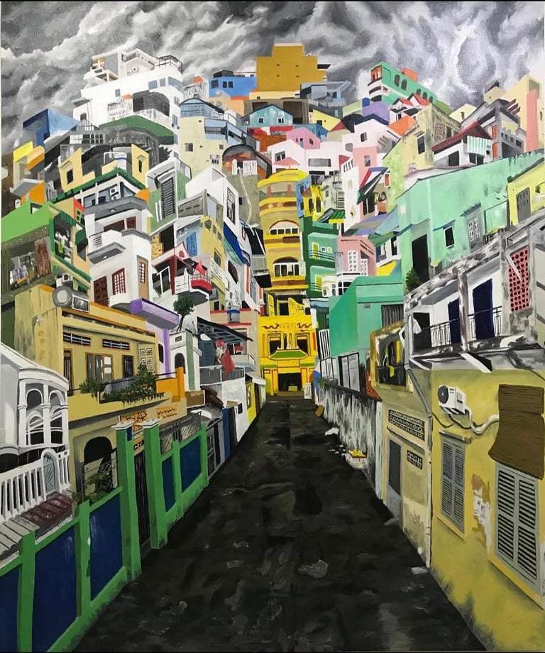 Michael's artwork captures the essence of everyday life in Vietnam beautifully; with his choice of rugged, sometimes temporary locations.